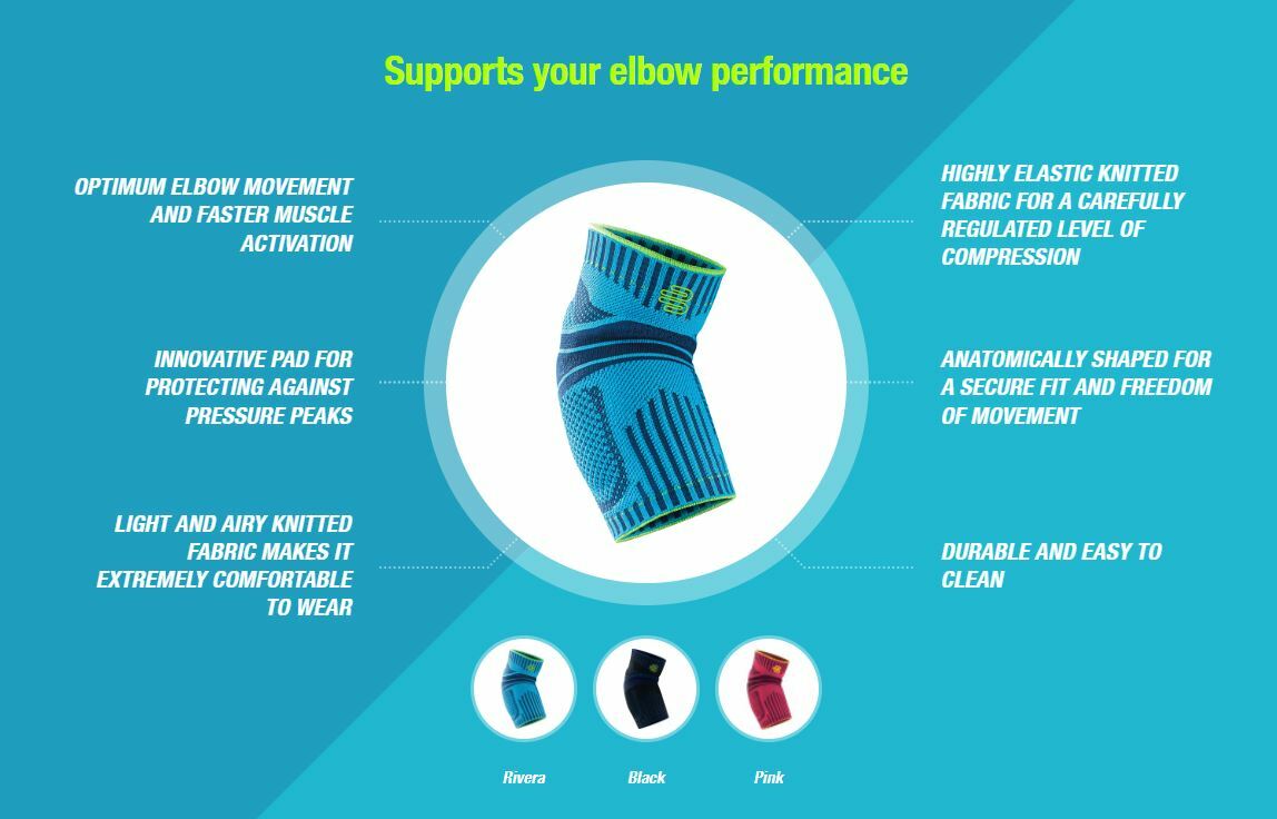 • 運動期間的肘部支撐:運動肘部支撐透過溫和有益的壓力來支撐肘部的運動。 肘部支撐包覆上臂和前臂。